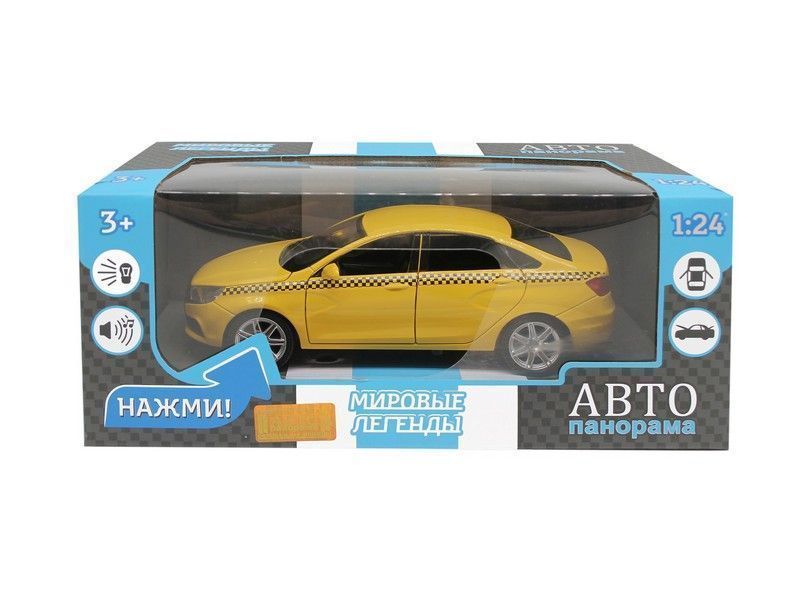 Металлическая лицензионная машинка LADA VESTA "Такси" седан - уменьшенная копия настоящего такси, которая прекрасно дополнит игрушечный автопарк городского транспорта. Модель машинки детально проработана, с ней можно развозить пассажиров в нужный пункт назначения. Машинка выпущена известной компанией по производству игрушек Автопанорама. Особенность коллекции в том, что все модели изготовлены по лицензии именитых автопроизводителей.