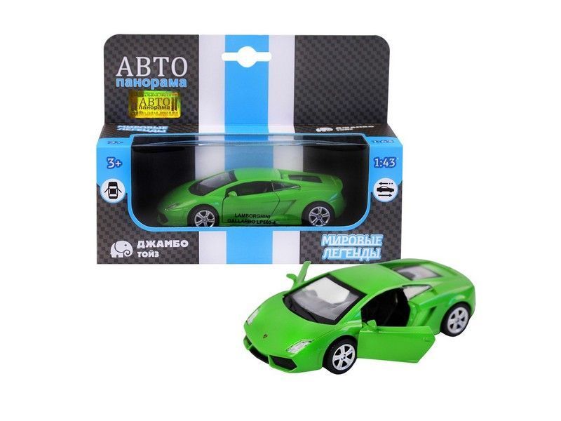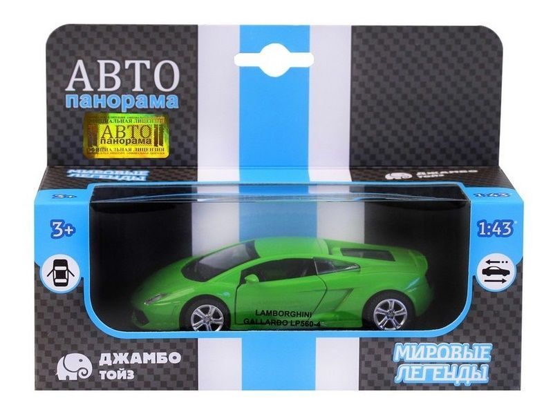 Машина "АВТОПАНОРАМА" Lamborghini Gallardo LP560-4, 1/43, зеленый, инерция, в/к 17,5*12,5*6,5 см