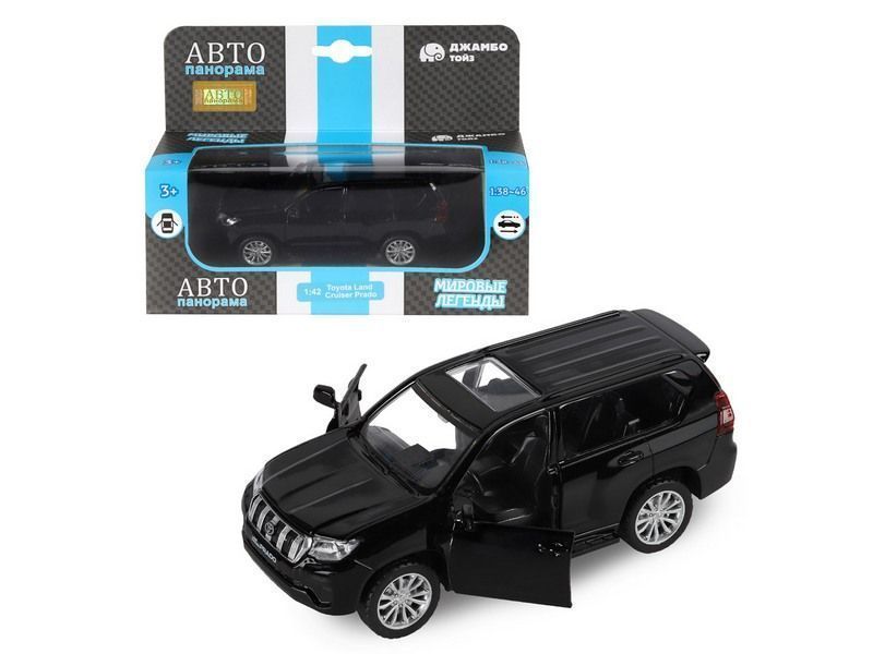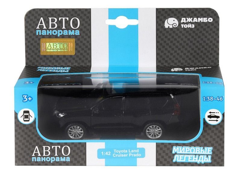 Машина "АВТОПАНОРАМА" Land Cruiser Prado, черный, 1/42, инерция, в/к 17,5*12,5*6,5 см
