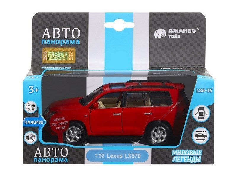 Машина "АВТОПАНОРАМА" Lexus LX570, красный, 1/32, свет, звук, инерция, в/к 17,5*13,5*9 см