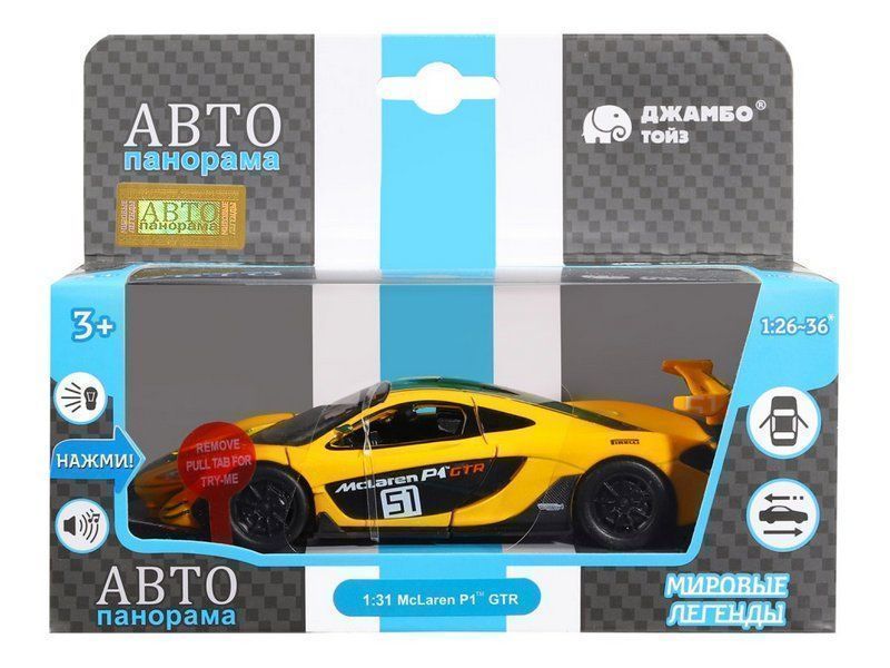 Металлическая машинка McLaren P1™ GTR - уменьшенная копия роскошного спортивного автомобиля в масштабе 1:32. Она отлично дополнит игрушечный автопарк и станет прекрасным подарком для маленького автолюбителя. Модель машинки детально проработана и выполнена с легко узнаваемым спортивным дизайном как у оригинала. Машинка выпущена известной компанией по производству игрушек Автопанорама. Особенность коллекции в том, что все модели изготовлены по лицензии именитых автопроизводителей.