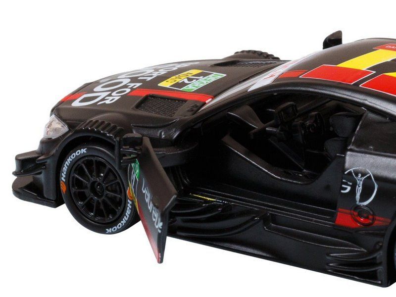 Модель выполнена в масштабе 1:42, у нее открываются передние двери и вращаются резиновые колеса. Яркий спортивный дизайн, спойлер, спортивный обвес впечатлит любого водителя. Игрушка оснащена инерционным механизмом - если откатить автомобиль немного назад и отпустить, он поедет вперед.
