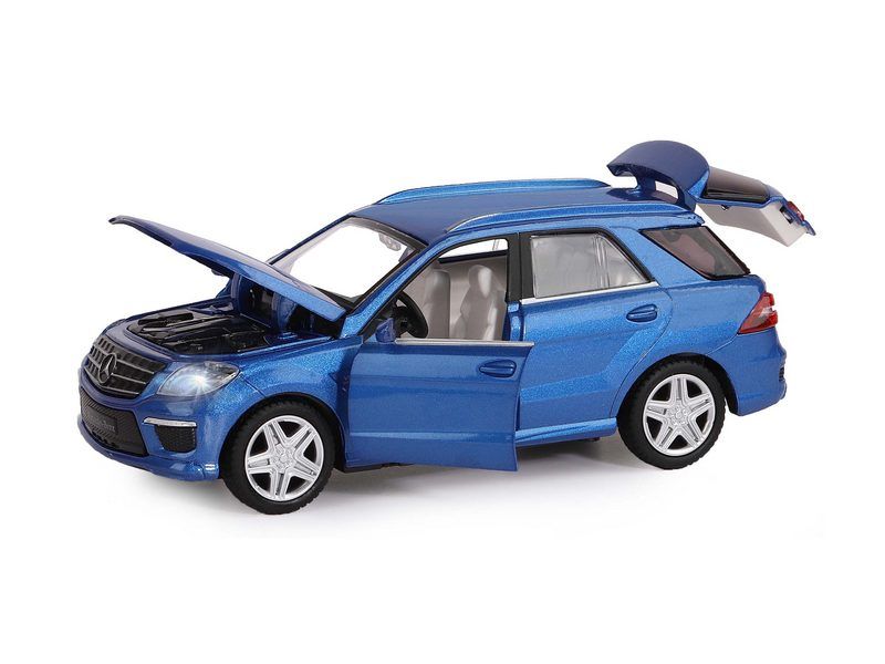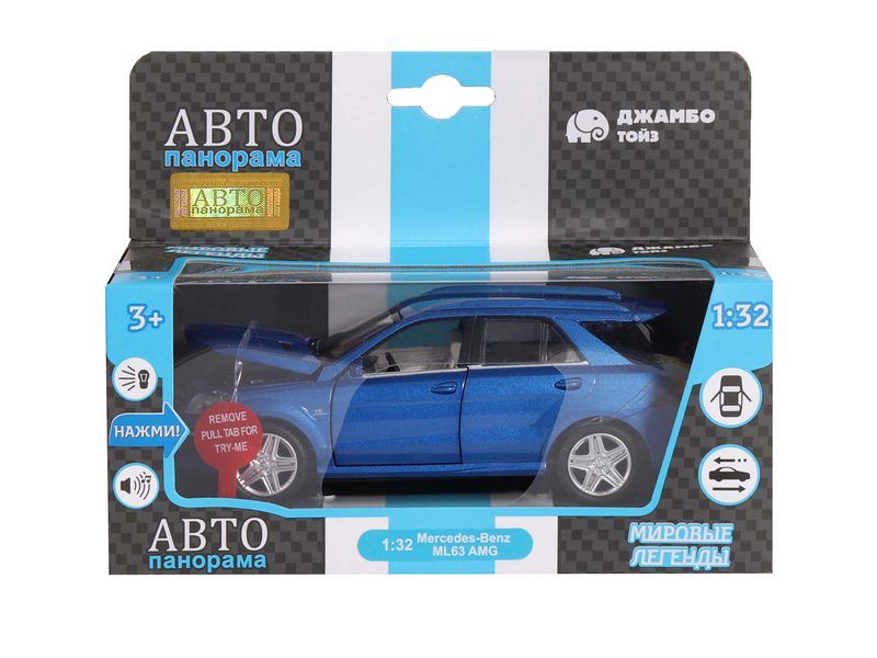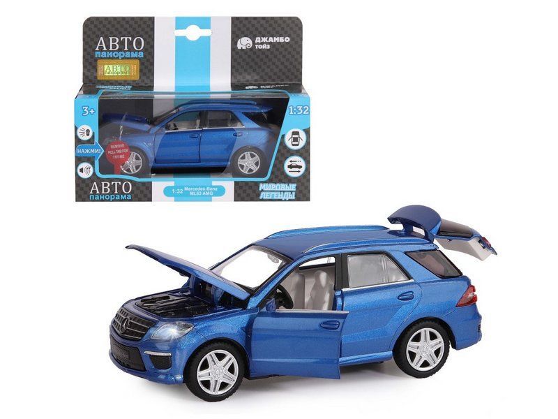 Металлическая машинка Mercedes-Benz ML63 AMG - уменьшенная копия легендарного немецкого внедорожника в масштабе 1:32. Модель машинки детально проработана и выполнена с легко узнаваемым дизайном как у оригинала, которую часто можно встретить на улицах города. Машинка выпущена известной компанией по производству игрушек Автопанорама. Особенность коллекции в том, что все модели изготовлены по лицензии именитых автопроизводителей.