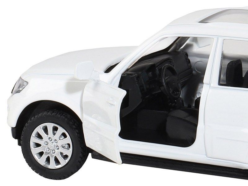 Модель выполнена в масштабе 1:43, у нее открываются передние двери и вращаются резиновые колеса. Игрушка оснащена инерционным механизмом - если откатить автомобиль немного назад и отпустить, он поедет вперед.