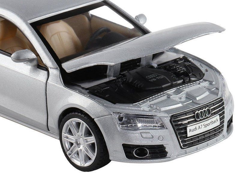 Модель выполнена в масштабе 1:32, у нее открываются двери. Яркий спортивный дизайн, обтекаемая форма кузова придают суперкару стремительный внешний вид. Колеса с резиновыми покрышками и литыми дисками, детально проработанный салон, фары, прозрачные окна, выхлопные трубы - всё как у настоящего автомобиля.