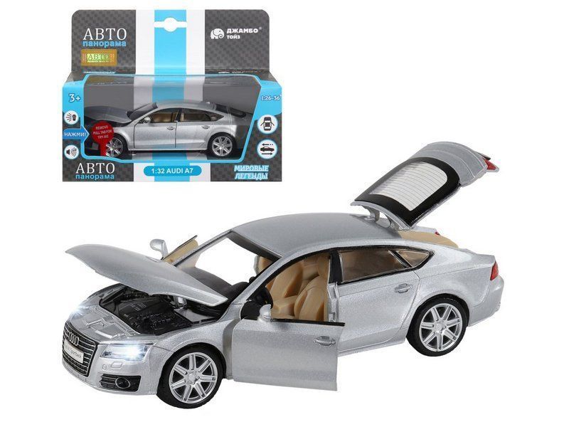 Игрушка оснащена инерционным механизмом - если откатить автомобиль немного назад и отпустить, он поедет вперед. При нажатии на корпус и при открытии дверей начинают светиться фары и включается звук.