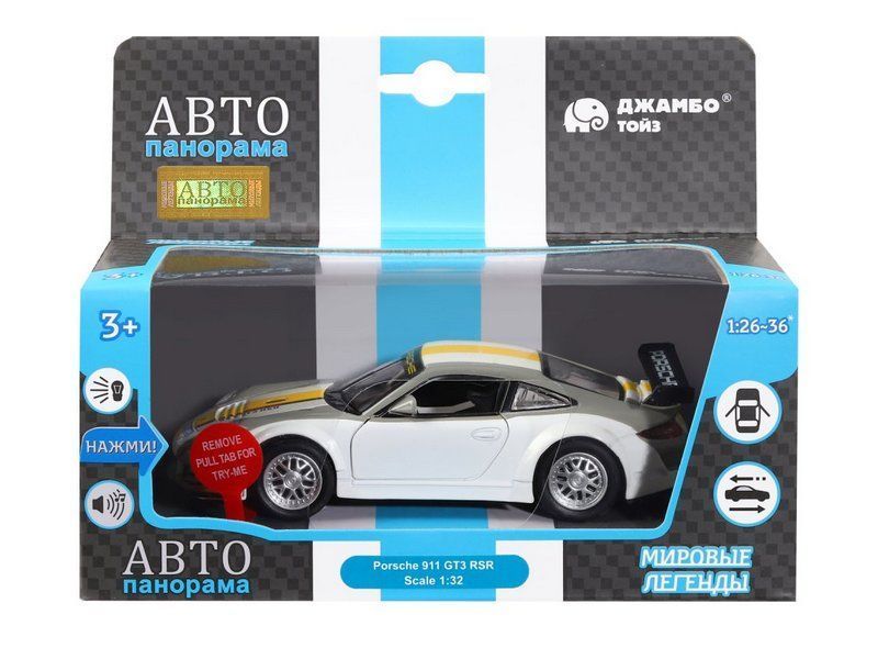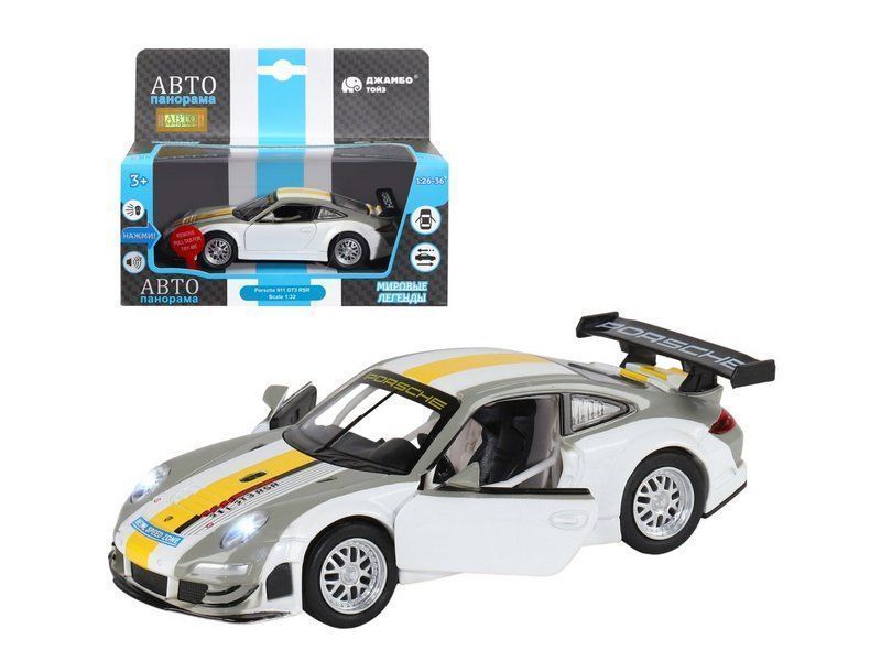 Металлическая машинка Porsche 911 GT3 RSR - уменьшенная копия роскошного спортивного автомобиля в масштабе 1:32. Она отлично дополнит игрушечный автопарк и станет прекрасным подарком для маленького автолюбителя. Модель машинки детально проработана и выполнена с легко узнаваемым спортивным дизайном как у оригинала. Машинка выпущена известной компанией по производству игрушек Автопанорама. Особенность коллекции в том, что все модели изготовлены по лицензии именитых автопроизводителей.