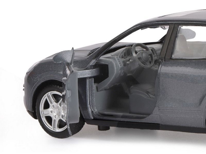 Модель выполнена в масштабе 1:32, у нее открываются передние двери, багажник. Колеса с резиновыми покрышками и литыми дисками, детально проработанный салон, фары, прозрачные окна, люк в крыше - всё как у настоящего автомобиля.