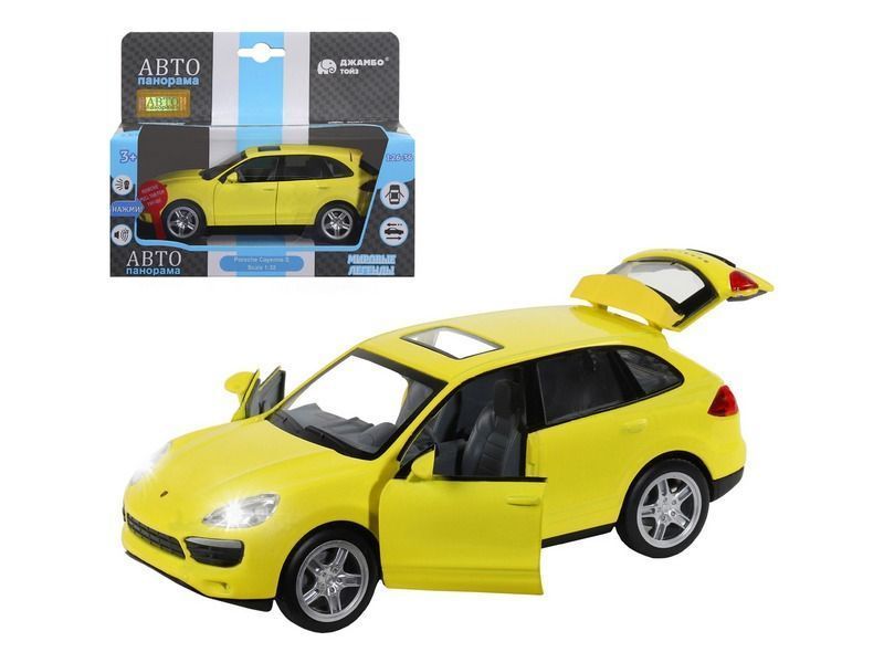 Металлическая машинка Porsche Cayenne S - уменьшенная копия одного из самых популярных кроссоверов в масштабе 1:32.Она отлично дополнит игрушечный автопарк и станет прекрасным подарком для маленького автолюбителя. Модель машинки детально проработана, окрашена в яркий цвет и выполнена с легко узнаваемым дизайном как у оригинала. Машинка выпущена известной компанией по производству игрушек Автопанорама. Особенность коллекции в том, что все модели изготовлены по лицензии именитых автопроизводителей.