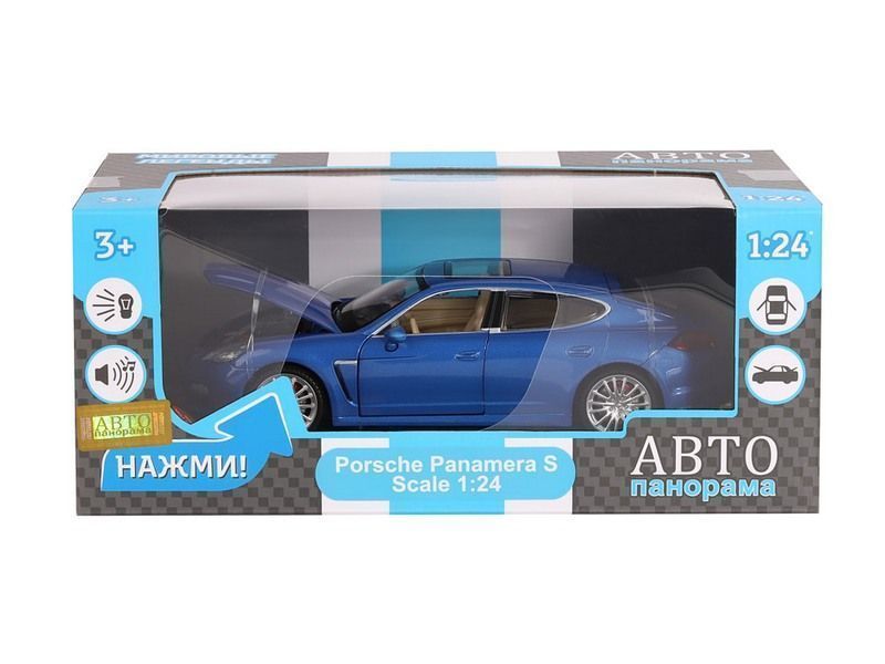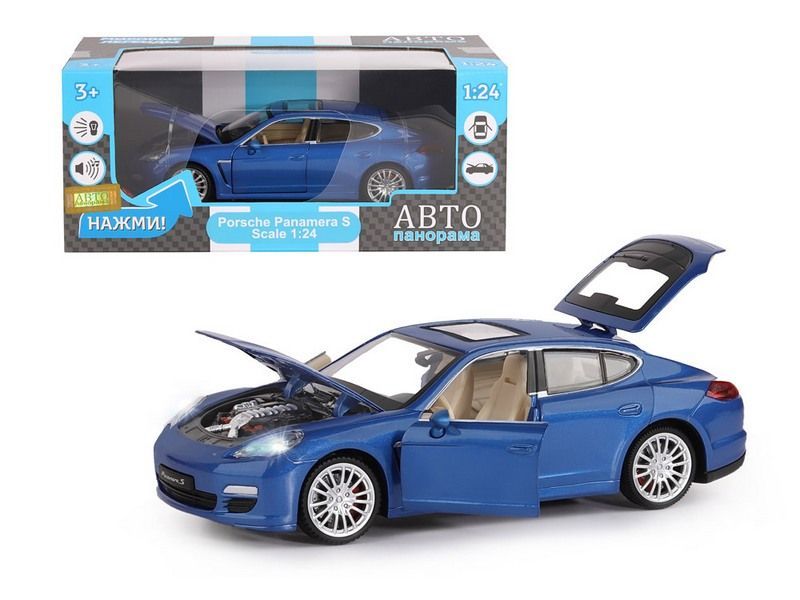 Машина "АВТОПАНОРАМА" Porsche Panamera S, синий, 1/24, свет, звук, в/к 24,5*12,5*10,5 см