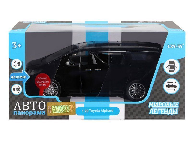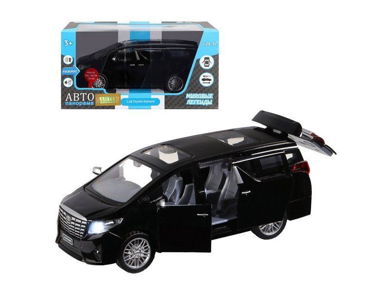 Машина "АВТОПАНОРАМА" Toyota Alphard, 1/29, черный, откр. двери, свет, звук, в/к 20*10*11 см