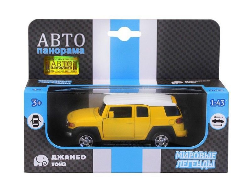 Машина "АВТОПАНОРАМА" Toyota FJ Cruiser, желтый, 1/43, инерция, в/к 17,5*12,5*6,5 см