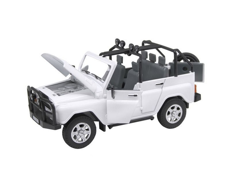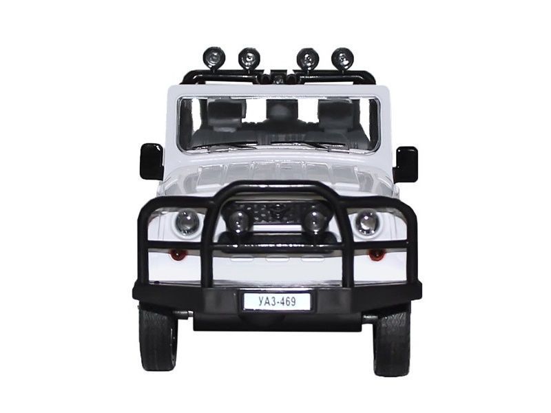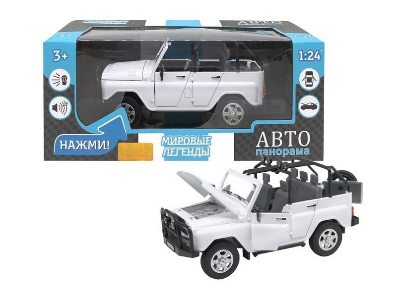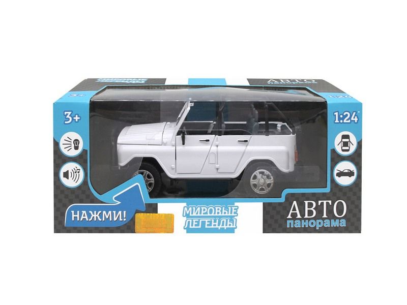 Машина "АВТОПАНОРАМА" УАЗ-469, 1/24, белый, свет, звук, инерция, в/к 22*12*11 см