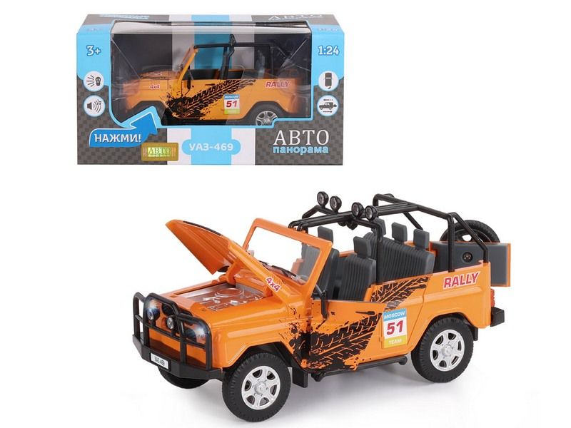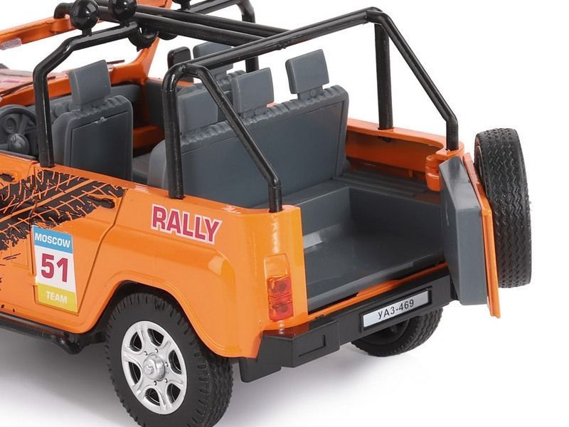 Металлическая лицензионная машинка УАЗ-469 "RALLY" с легко узнаваемым дизайном кузова легендарного "Уазика" - уменьшенная копия известного внедорожника, который можно эксплуатировать практически в любых условиях. Ей покорится любое бездорожье. Машинка прекрасно дополнит игрушечный автопарк и сделает игру более увлекательной.