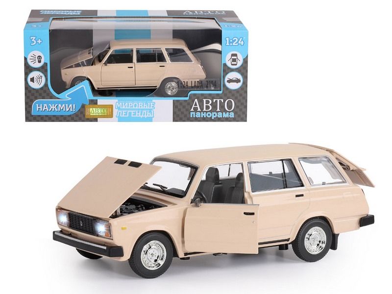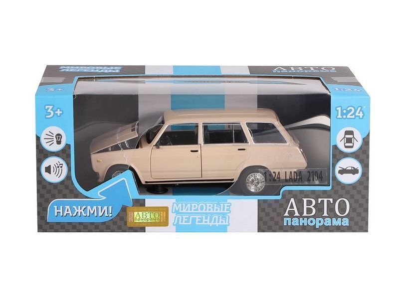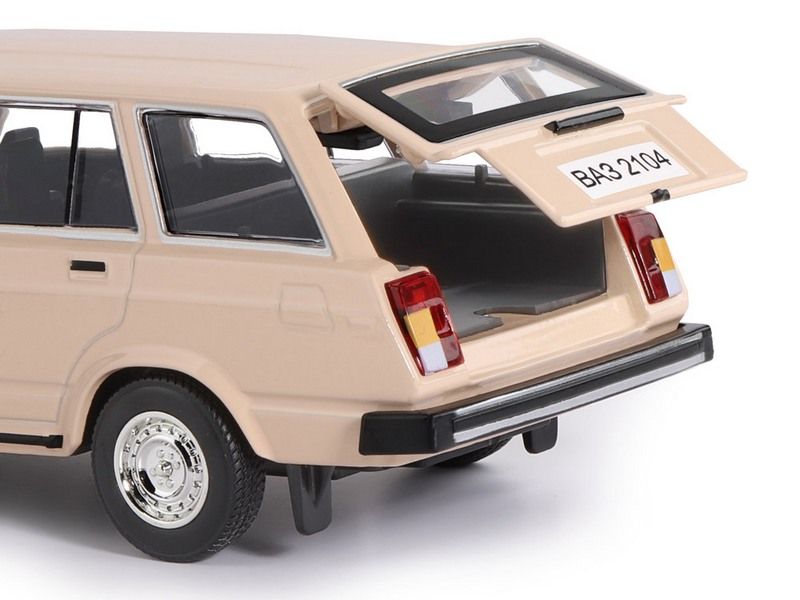 Металлическая машинка ВАЗ-2104 - сделана в стиле популярного советского автомобиля в кузове универсал с увеличенным багажным отсеком, позволявшим перевозить крупные предметы. Машинка выпущена известной компанией по производству игрушек Автопанорама. Особенность коллекции в том, что все модели изготовлены по лицензии именитых автопроизводителей.