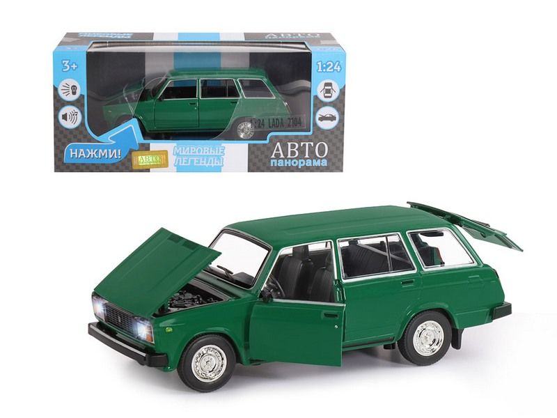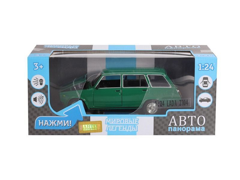 Машина "АВТОПАНОРАМА" ВАЗ 2104, зеленый, 1/24, инерция, в/к 24,5*12,5*10,5 см