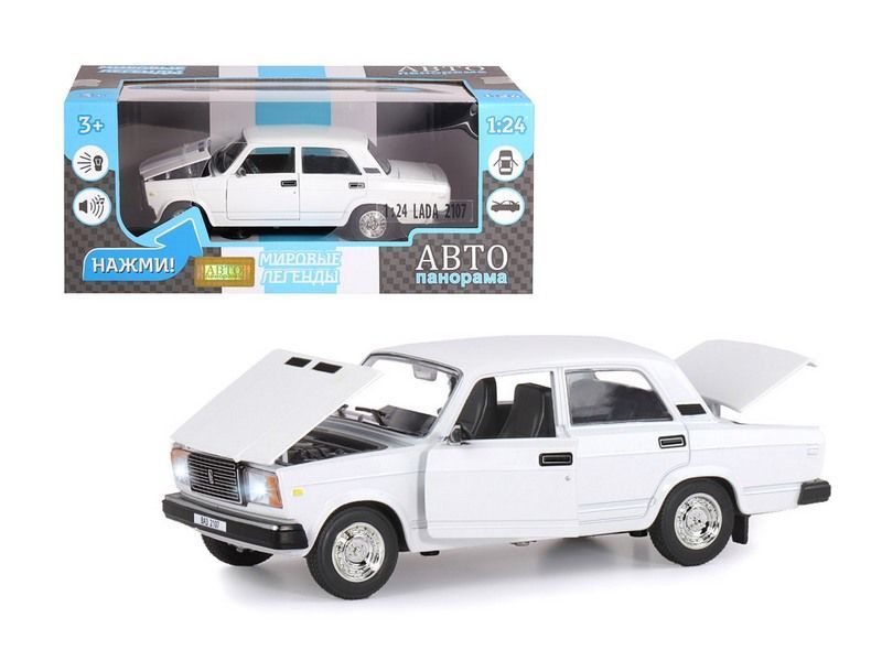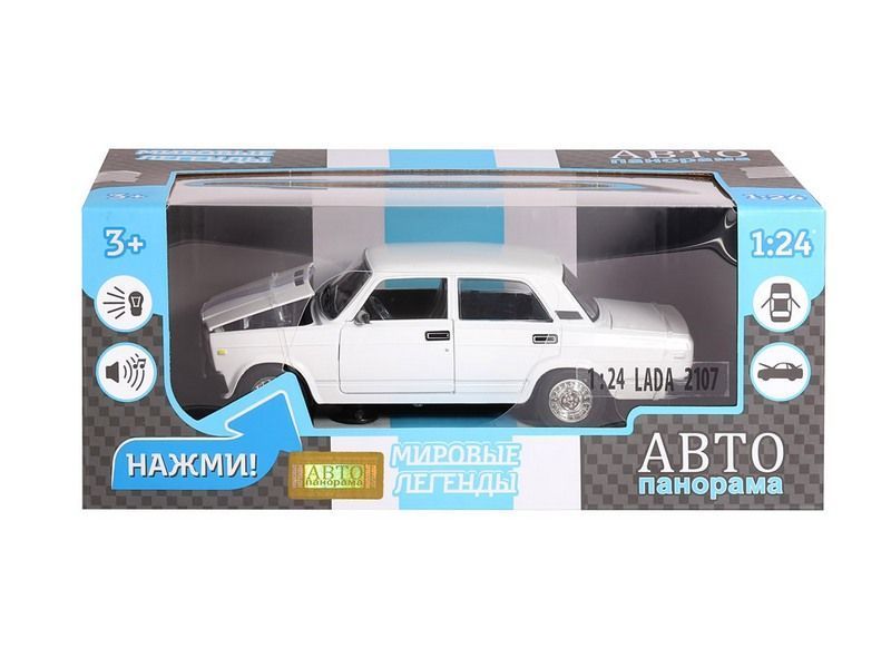 Машина "АВТОПАНОРАМА" ВАЗ 2107, 1/24, белый, инерция, в/к 24,5*12,5*10,5 см