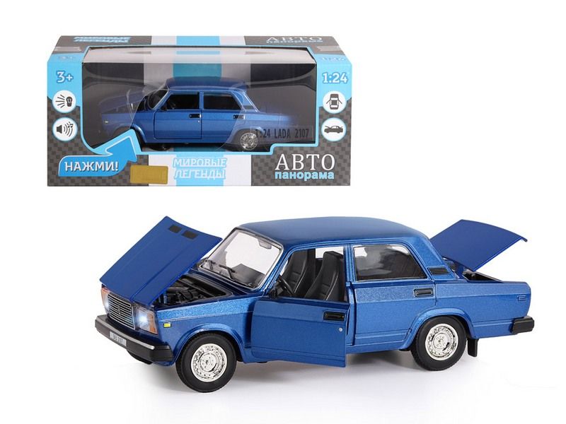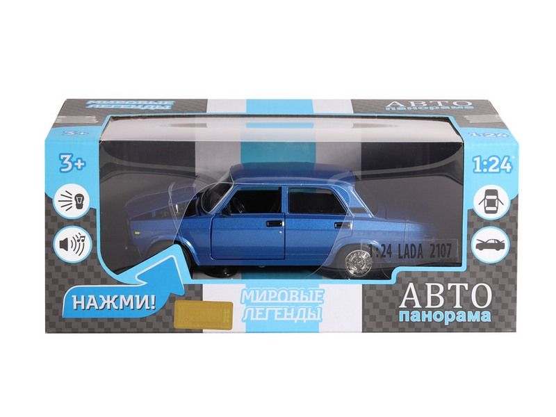 Машина "АВТОПАНОРАМА" ВАЗ 2107, 1/24, синий, инерция, в/к 24,5*12,5*10,5 см