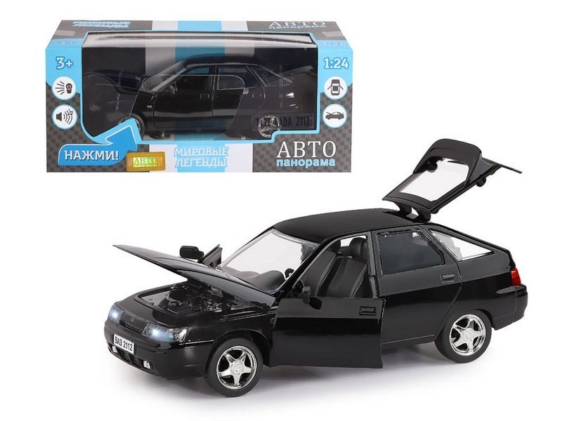 Машина "АВТОПАНОРАМА" ВАЗ 2112, 1/22, черный, инерция, в/к 24,5*12,5*10,5 см