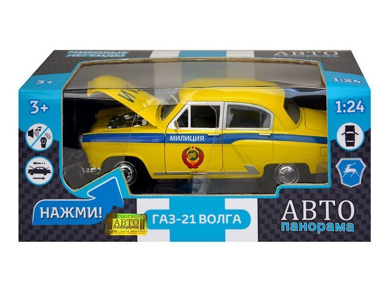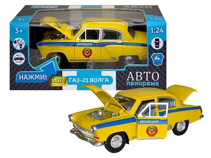 Металлическая машинка Волга ГАЗ-21 "ГАИ" - уменьшенная копия милицейского автомобиля, которая прекрасно дополнит игрушечный автопарк спецтранспорта. Модель машинки детально проработана, с узнаваемым дизайном легенды времен СССР, с ней можно окунуться в прошлое и участвовать в погонях за правонарушителями, а также изучать ПДД и патрулировать улицы. Машинка выпущена известной компанией по производству игрушек Автопанорама. Особенность коллекции в том, что все модели изготовлены по лицензии именитых автопроизводителей.
