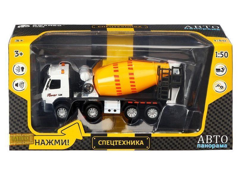 Машина "АВТОПАНОРАМА" Volvo бетономешалка, белый, 1/50, свет, звук, в/к 28*14*10 см