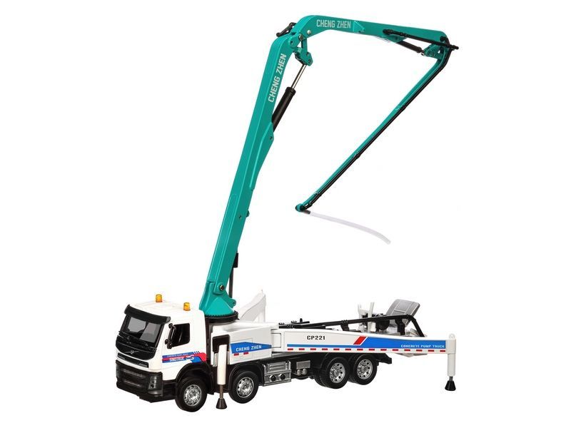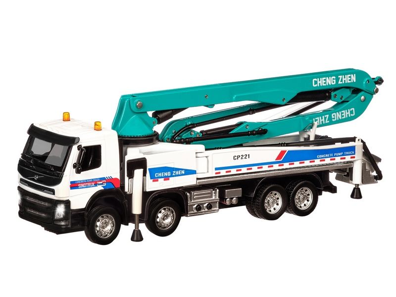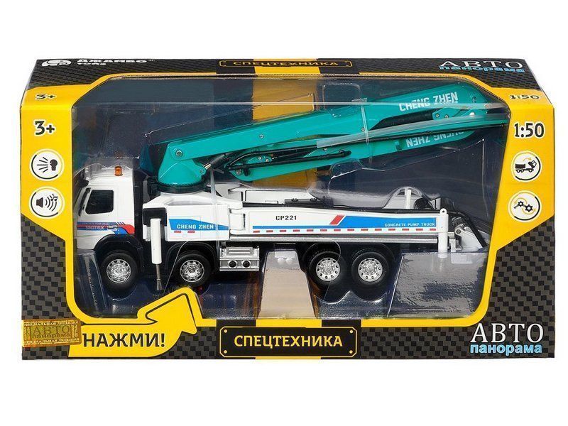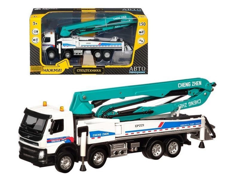 Машина "АВТОПАНОРАМА" Volvo бетононасос, белый, 1/50, свет, звук, в/к 28*14*10 см
