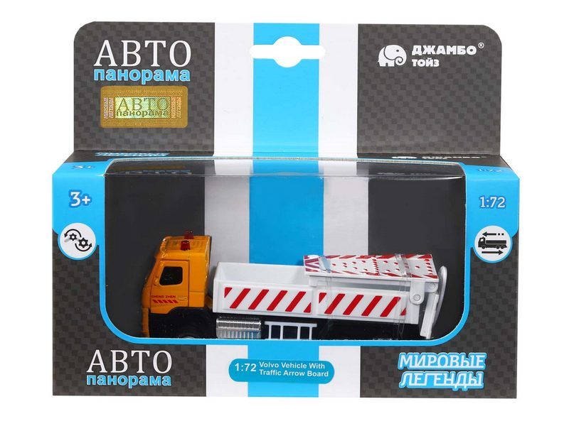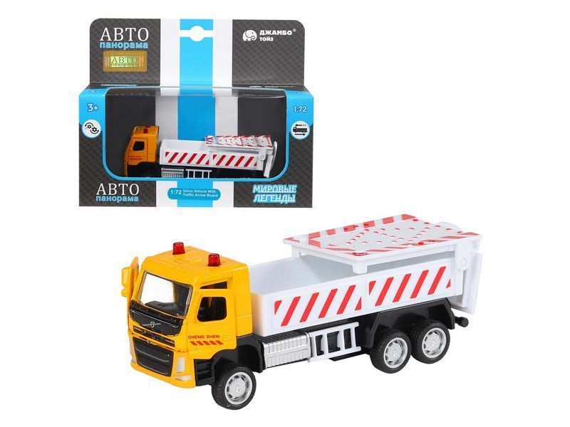 Машина "АВТОПАНОРАМА" VOLVO FM "Дорожные службы", желтый, 1/72, инерция, в/к 17,5*13*6,5 см