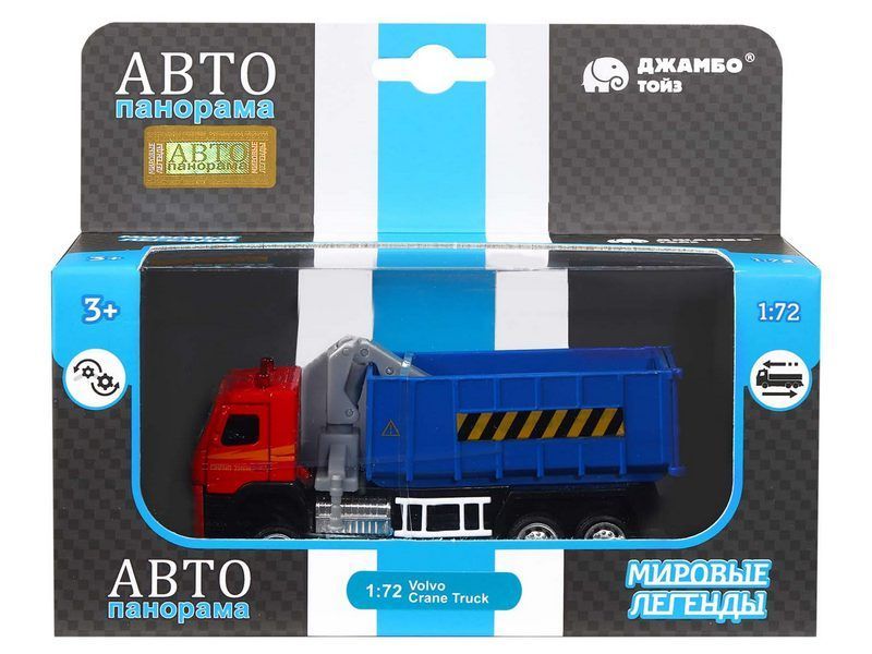 Машина "АВТОПАНОРАМА" VOLVO FM "Мусоровоз", синий, 1/72, инерция, в/к 17,5*13*6,5 см