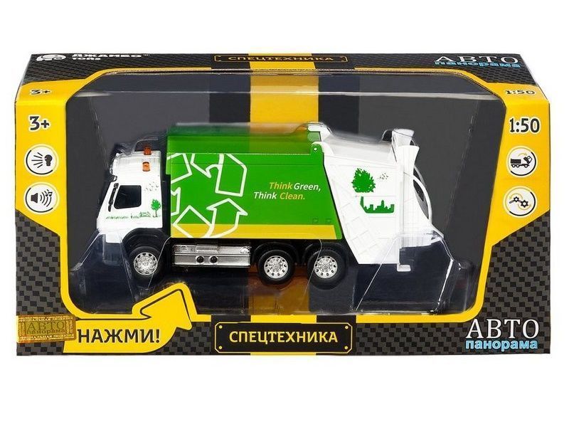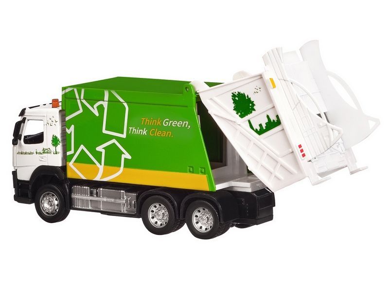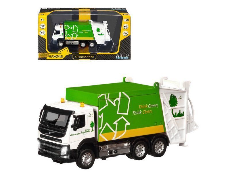 Машина "АВТОПАНОРАМА" Volvo мусоровоз, зеленый, 1/50, свет, звук, в/к 28*14*10 см
