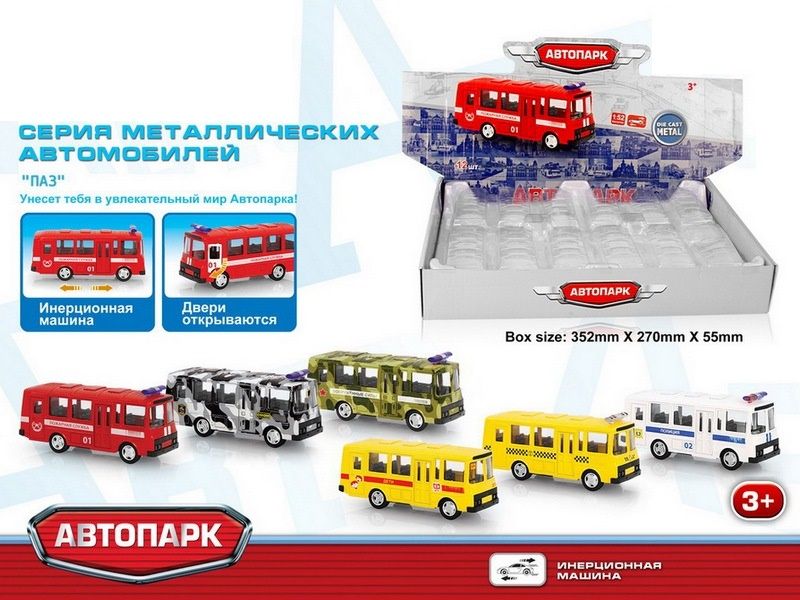 Машина АВТОПАРК 1:52 ПАЗ 6563 в асс. инерция (1/12шт.) б/к