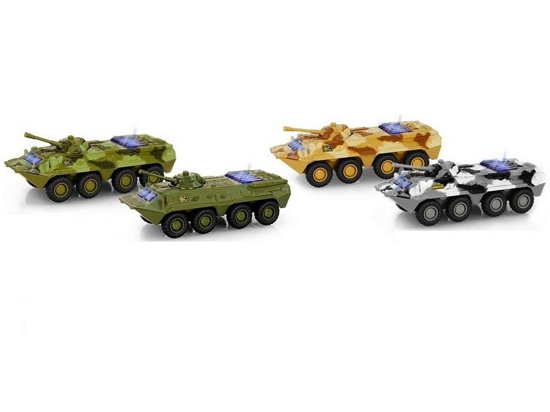 Игрушка оснащена инерционным ходом. Для того, чтобы БТР-80 поехал вперед, необходимо его отвести назад, а затем отпустить. Прорезиненные колеса обеспечивают надежное сцепление с любой поверхностью пола.