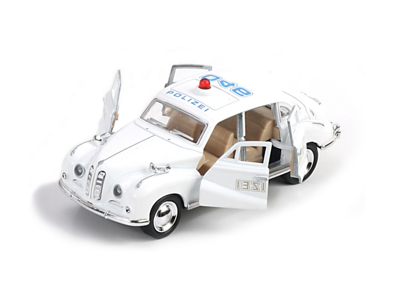 Машинка выполнена в стиле "Ретро" из серии Old Times. У нее вращаются колеса. У машинки открываются двери, через которые можно рассмотреть салон.