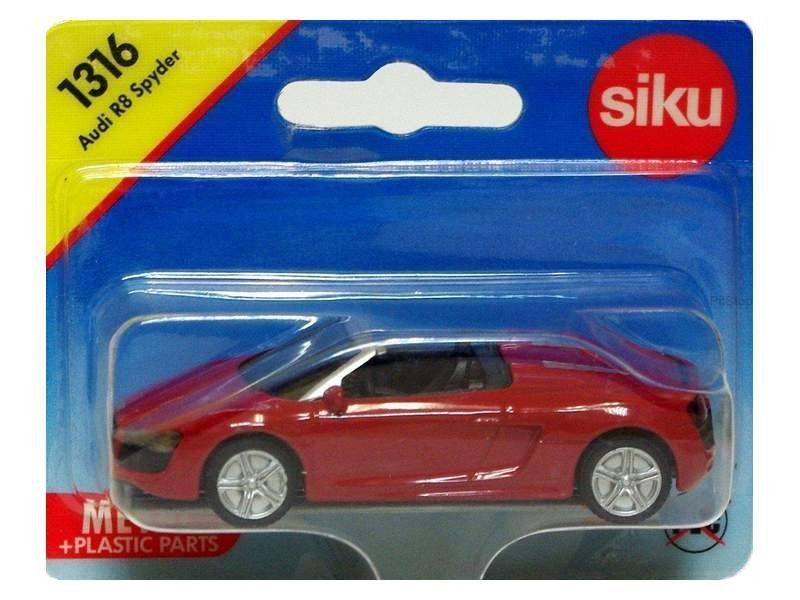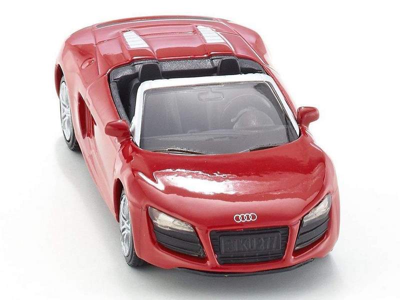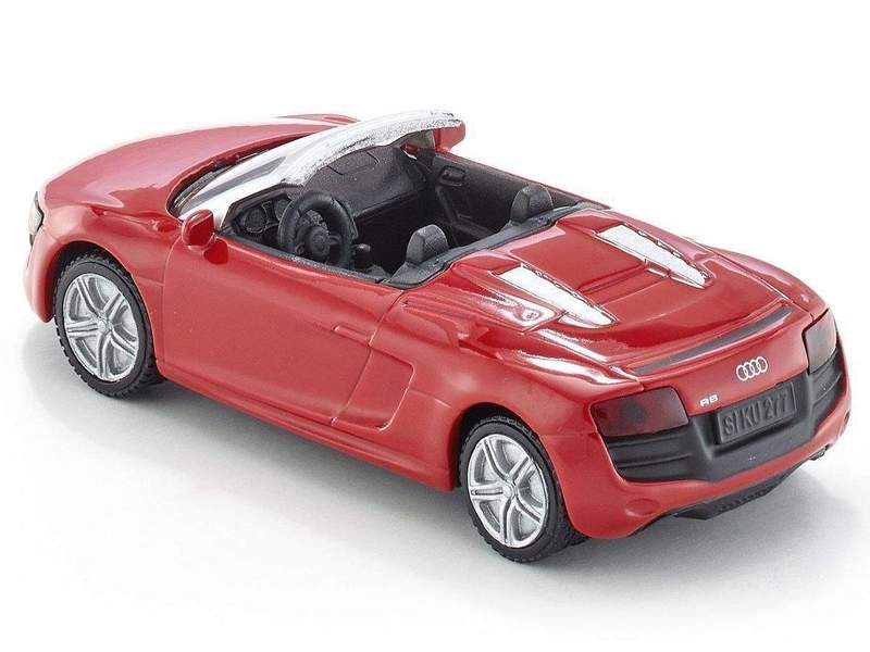 Игрушечная модель машинки Audi R8 Spyder в кузове кабриолет от Siku. Audi R8 Spyder - это спортивный суперкар. Тщательно проработанные детали автомобиля делают его максимально реалистичным и интересным для игры. Корпус автомобиля выполнен из металла, стекла из прозрачного пластика, колёса выполнены из резины и вращаются, машинку можно катать.