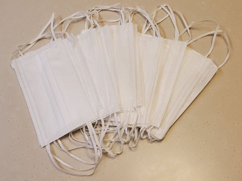 Маска защитная трехслойная на резинке с фиксатором для носа (20шт.)