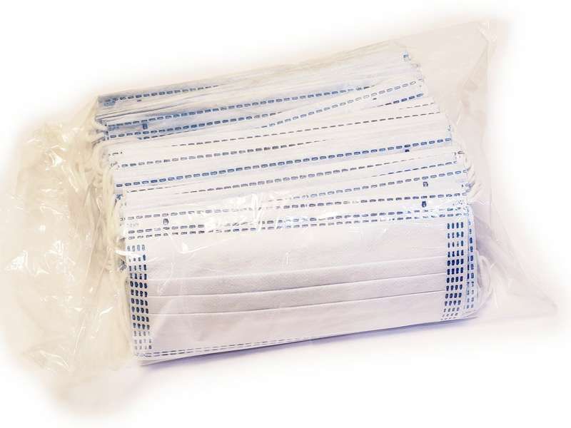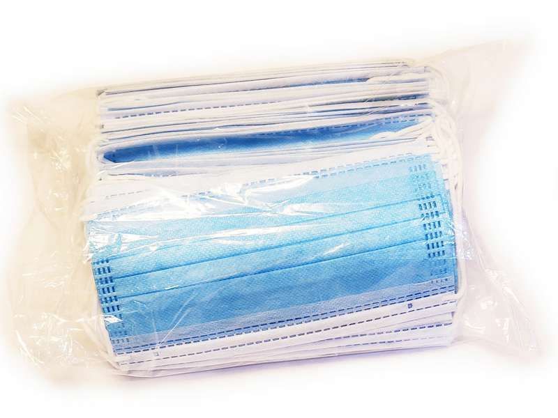 Маска защитная трехслойная на резинке с фиксатором для носа (50шт)