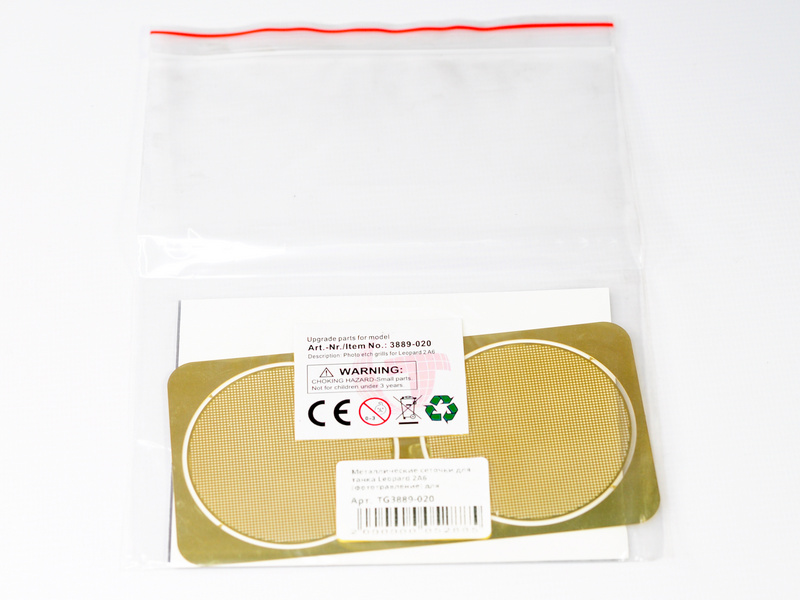 Металлические сеточки (фототравление) для моторного отсека радиоуправляемых танков Taigen и HengLong Leopard 2 A6 (3889) масштаба 1/16.Характеристики: