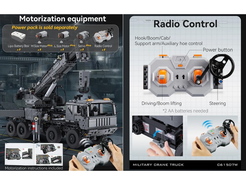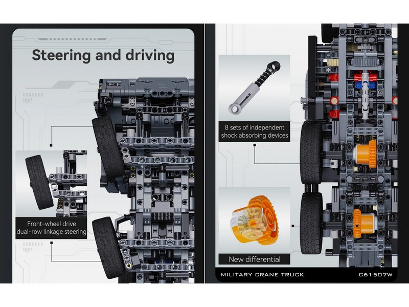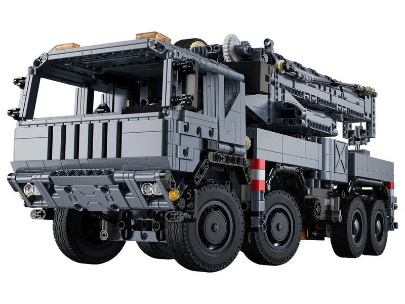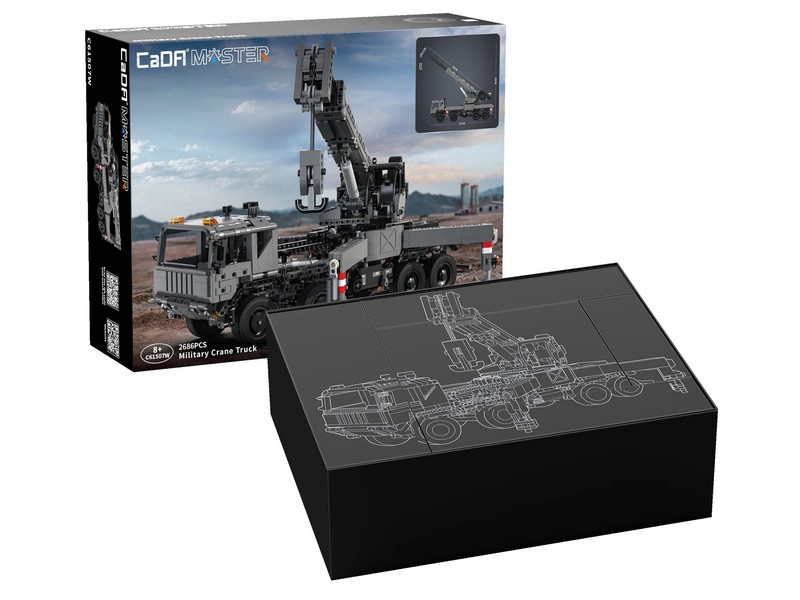 Радиоуправляемый конструктор от CADA представляет собой набор для постройки военного автокрана от Эффермана, известного как один из лучших создателей промышленных транспортных средств в Германии.