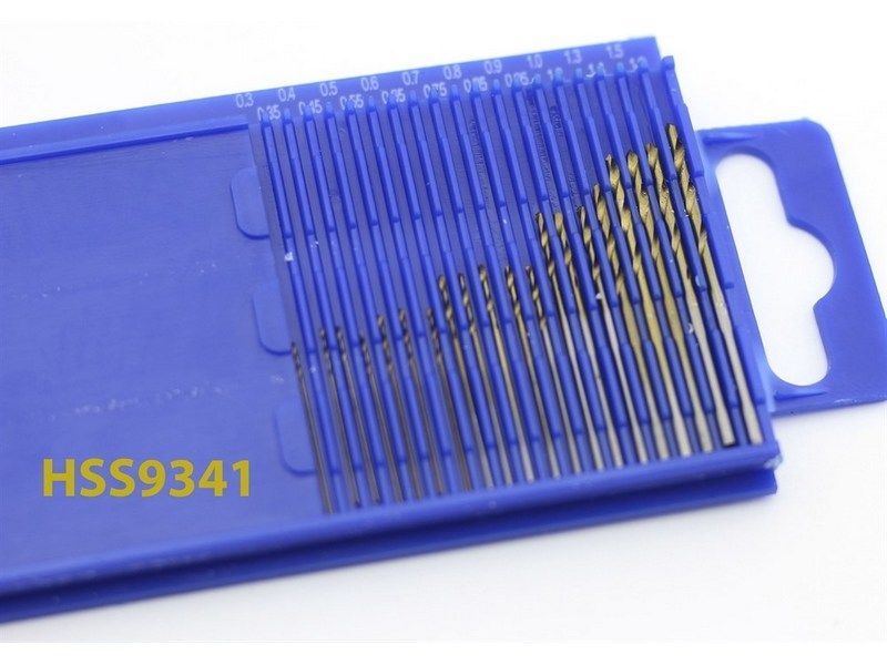 Мини-сверла, диаметр 0,3 - 1,6 мм, набор, 20 шт., HSS 9341, нитрид-натриевое покрытие, шт