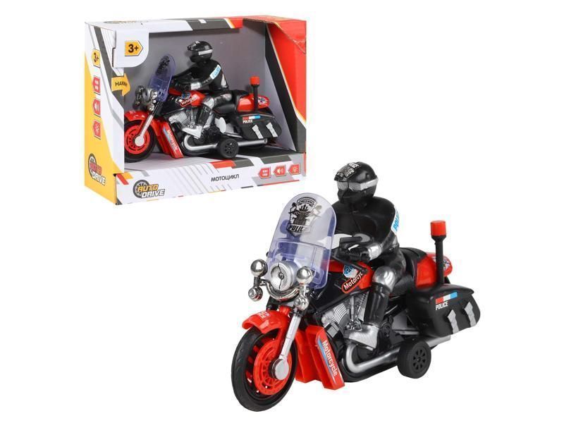 Мотоцикл AUTODRIVE Полиция 15см инерц. на бат. со светом и звуком, красный, в/к 17,5*14*6,5, ,