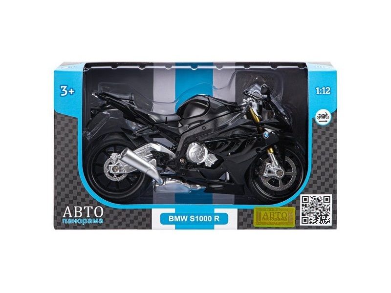 Мотоцикл "АВТОПАНОРАМА" BMW S1000R, 1/12, металл, черный, свободный ход колес