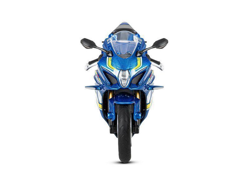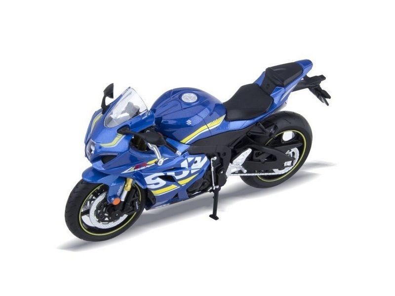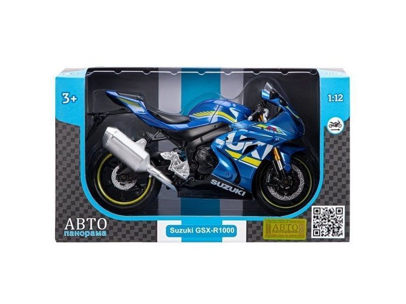 SUZUKI GSR-R1000 - реалистичная копия мотоцикла в масштабе 1:12. Отлично дополнит игрушечный гараж и станет прекрасным подарком для маленького авто- и мотолюбителя. Модель мотоцикла выполнена в легко узнаваемом дизайне как у оригинала. Колеса с резиновыми покрышками и литыми дисками, детально проработанный корпус, фары - всё как у настоящего мото. Переднее колесо можно поворачивать с помощью руля. Игрушечная модель оснащена подножкой, чтобы мотоцикл было удобно парковать.