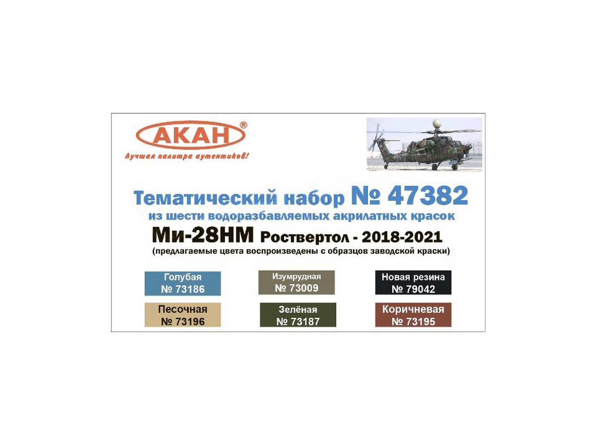 Тематический набор из 6 акрилатлатексных водоразбавляемых красок Ми-28НМ Роствертол - 2018-2021 на оригинальном разбавителе.