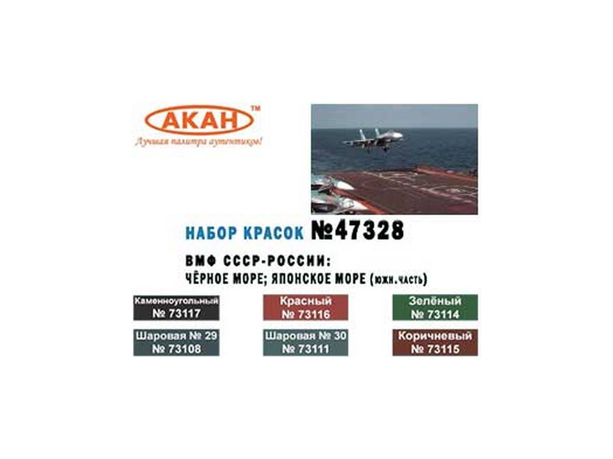 Набор АКАН акрилатлатексных красок ВМФ СССР - России: Чёрное море; Японское море (юг), 6х10 мл