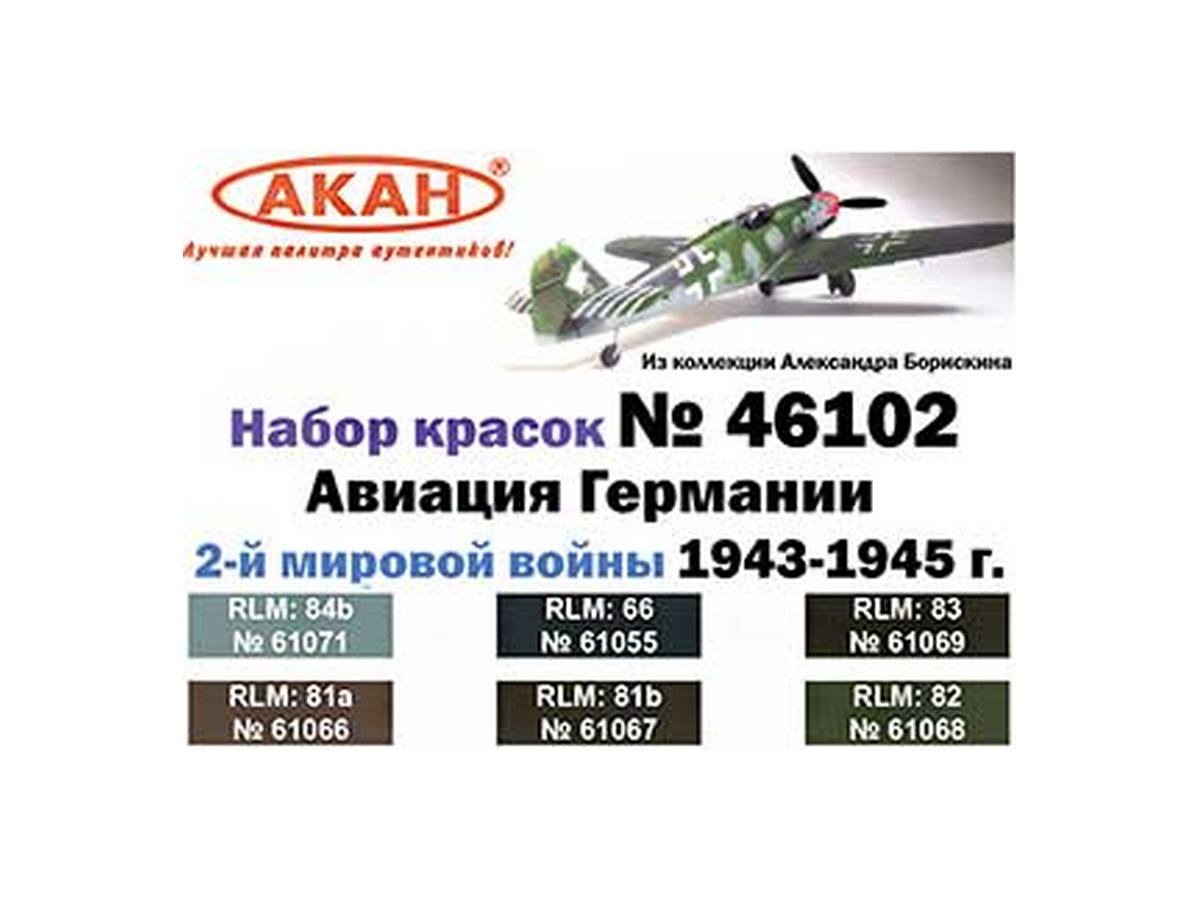 Тематический набор из 6 акриловых красок Авиация Германии 2-й мировой войны 1943-45 г.г. на оригинальном разбавителе.