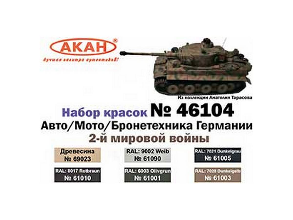 Набор АКАН акриловых красок Авто/Мото/Бронетехника Германии 2-й мировой войны, 6х10 мл