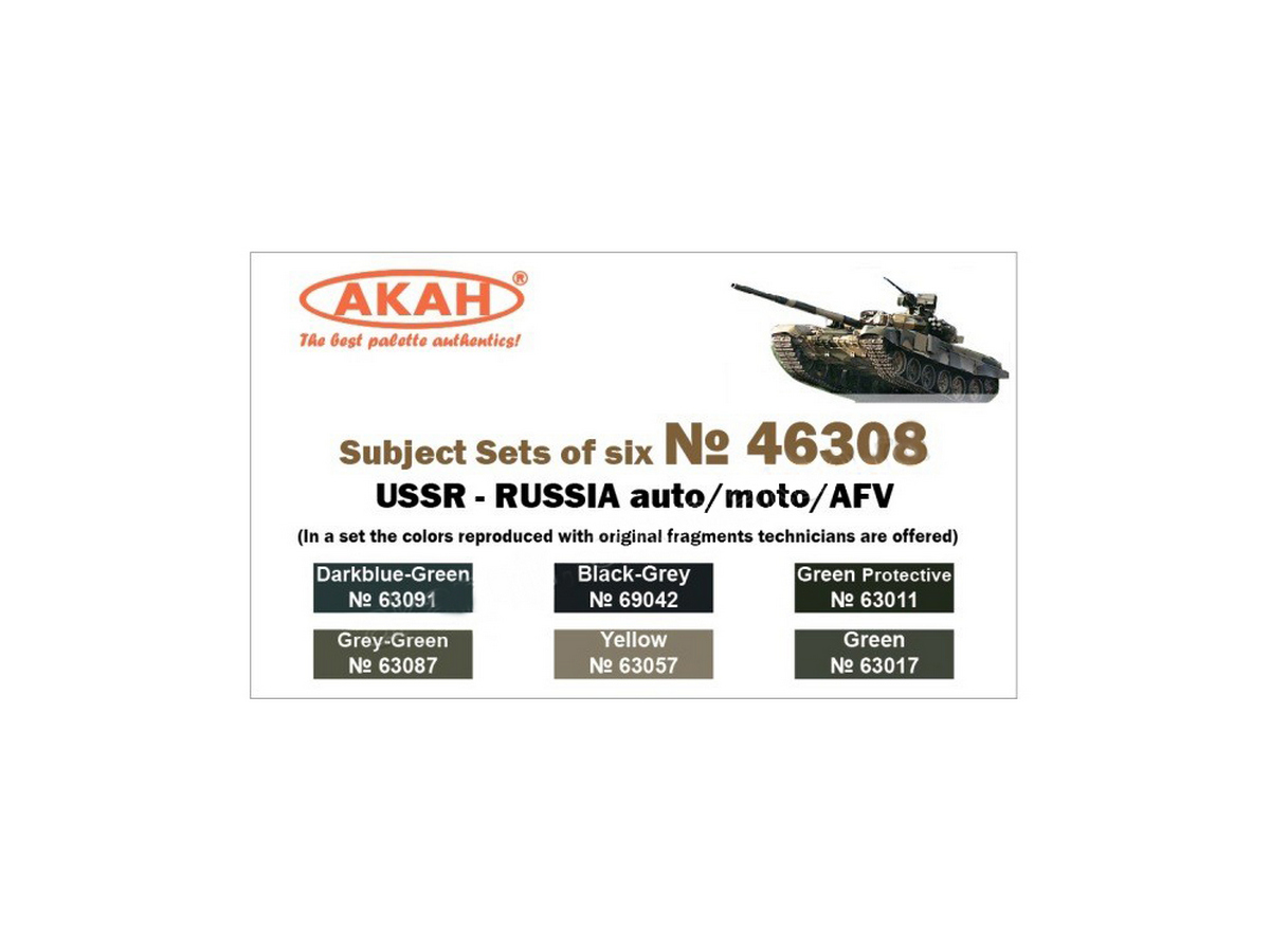 Набор АКАН акриловых красок Авто/мото/бронетехника СССР - России, 6х10 мл