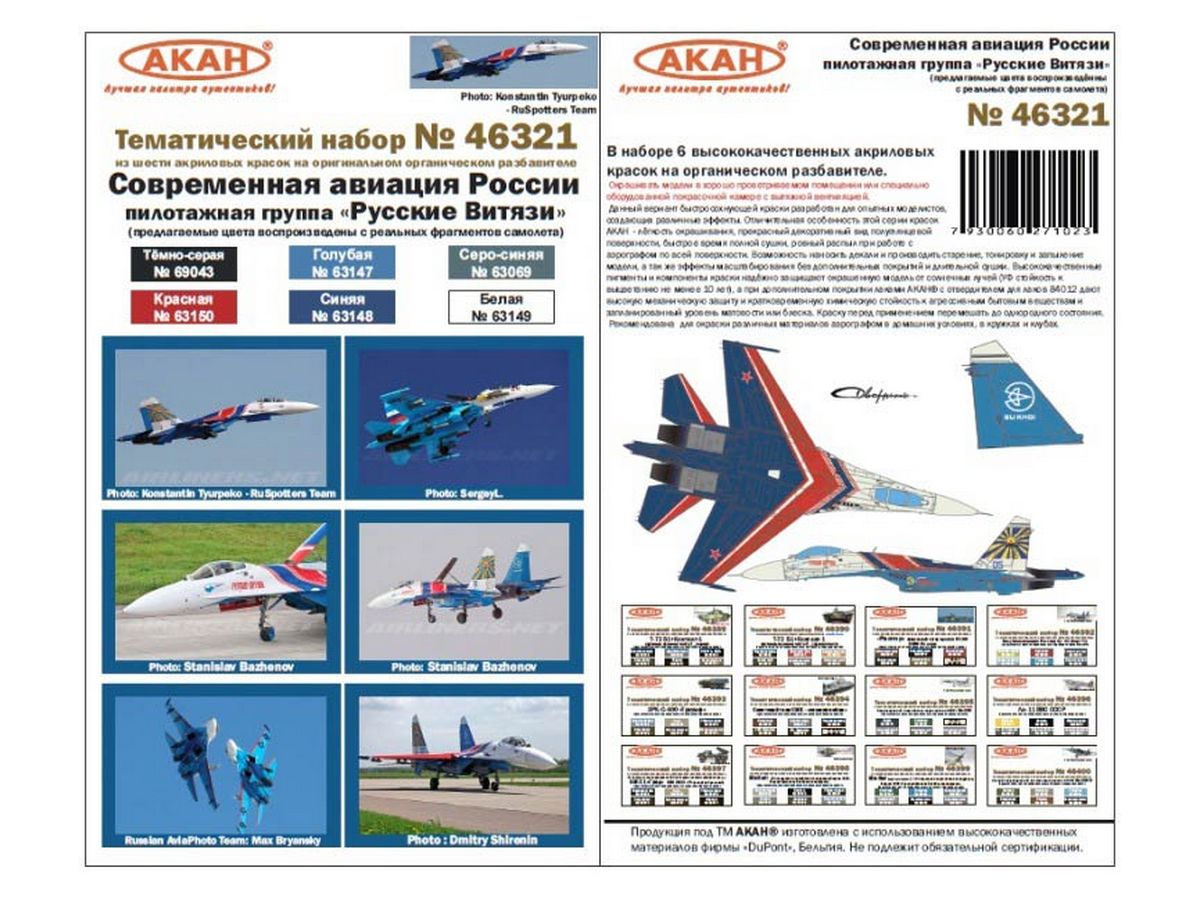 Набор АКАН акриловых красок Современная авиация России: Су-27 "Русские Витязи", 6х10 мл