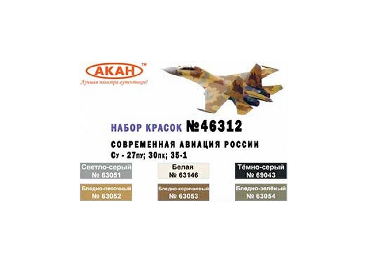 Набор АКАН акриловых красок Современная авиация России: Су - 27пу; 30пк; 35-1, 6х10 мл