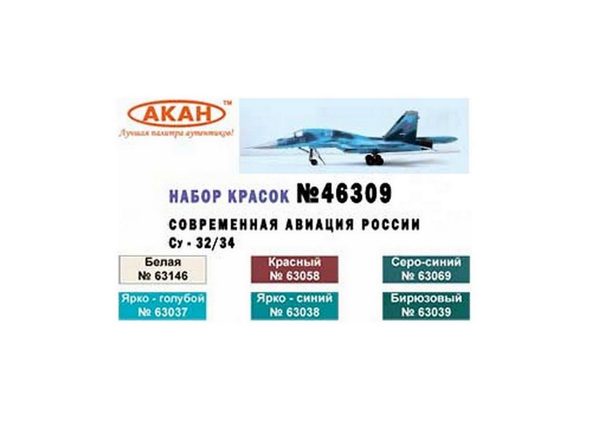 Тематический набор из 6 акриловых красок Современная авиация России: Су-32/34 на оригинальном разбавителе.
