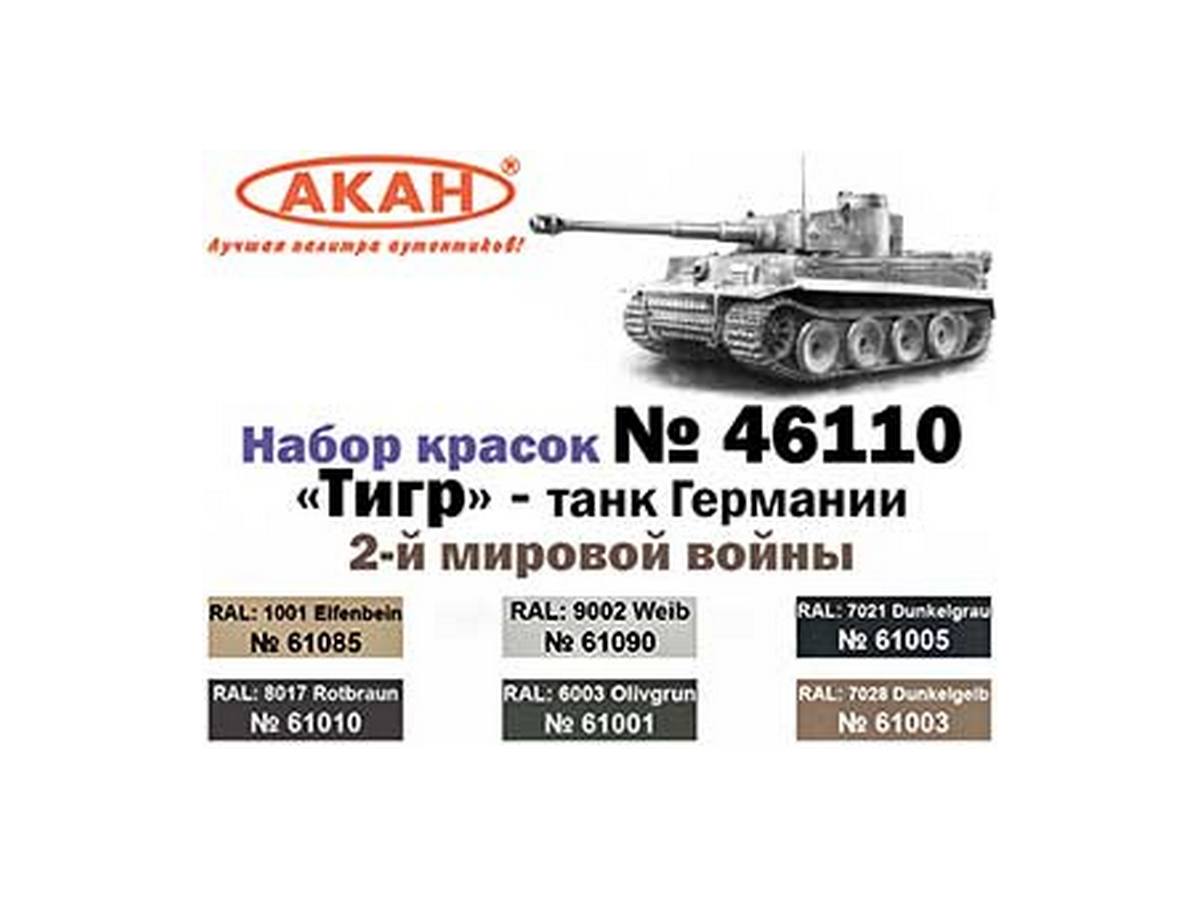 Набор АКАН акриловых красок "Тигр" - танк Германии 2-й мировой войны, 6х10 мл